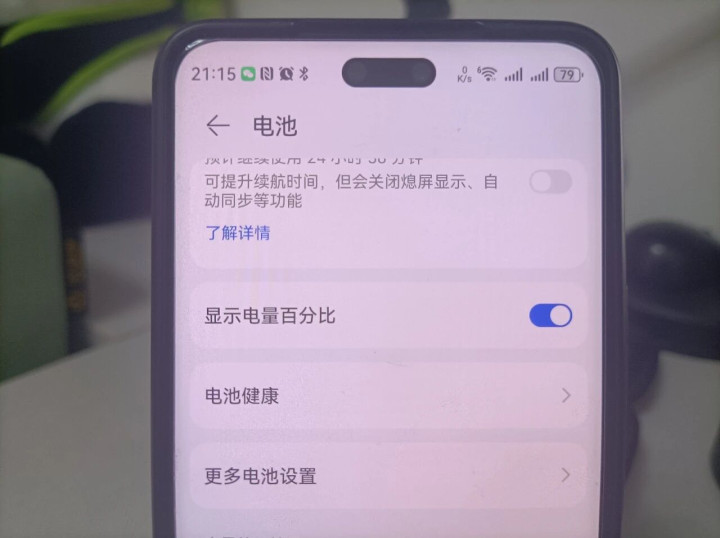 要是思要及时稽查手机电量的话,只需要在这个页面中怒放“显露电量百分比”,右侧的开关,然后就不错在手机屏幕的右上角直不雅地看到剩余电量了。