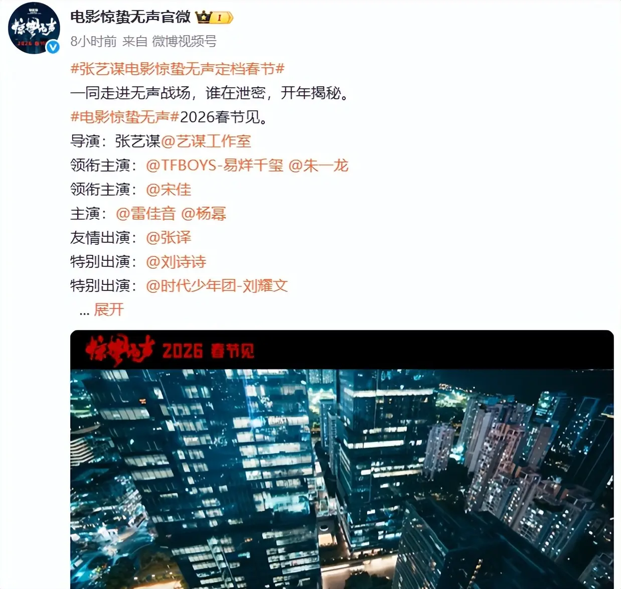 不外,上述几部作品照旧莫得《惊蛰无声》的影响力大,光是定档音问就引爆热搜了,该片细则登陆春节档,这是要跟其他影片打擂台。