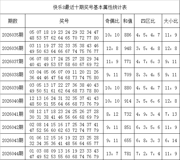 韩侠舒畅8第2026045期奖号属性分析
